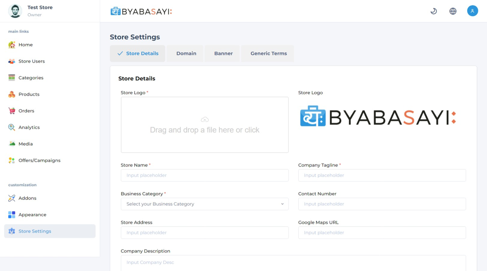 Set up your store with Byabasayi, including you basic store information and your products as well as byabasayi store themes.